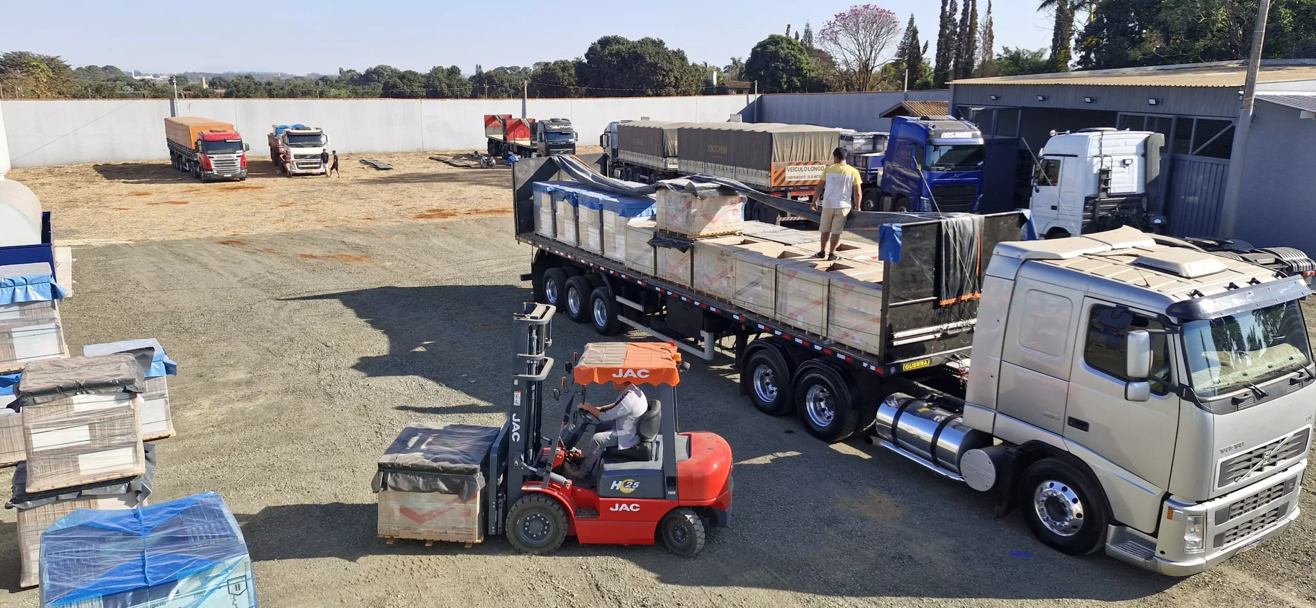 Temos uma estrutura sólida que conta com frota própria e veículos agregados, pátio para armazenagem e movimentação de cargas, empilhadeira e barracão coberto para manter a integridade da mercadoria de nossos clientes.